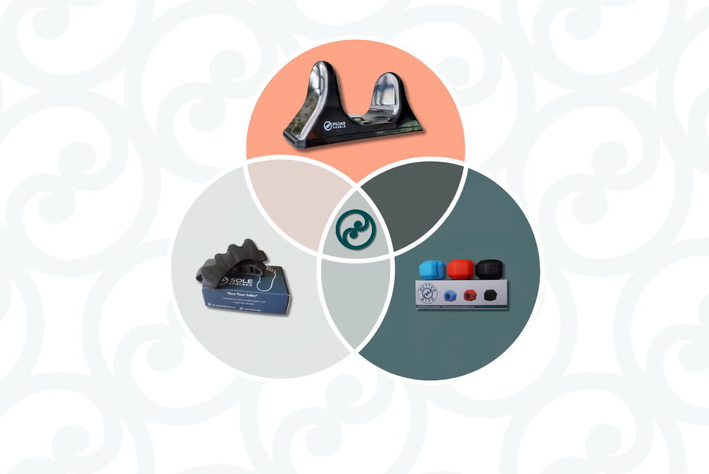 - Psoas Saddle: A deep-release tool for the hip flexors, easing tension that affects posture, mobility, and even respiratory capacity.